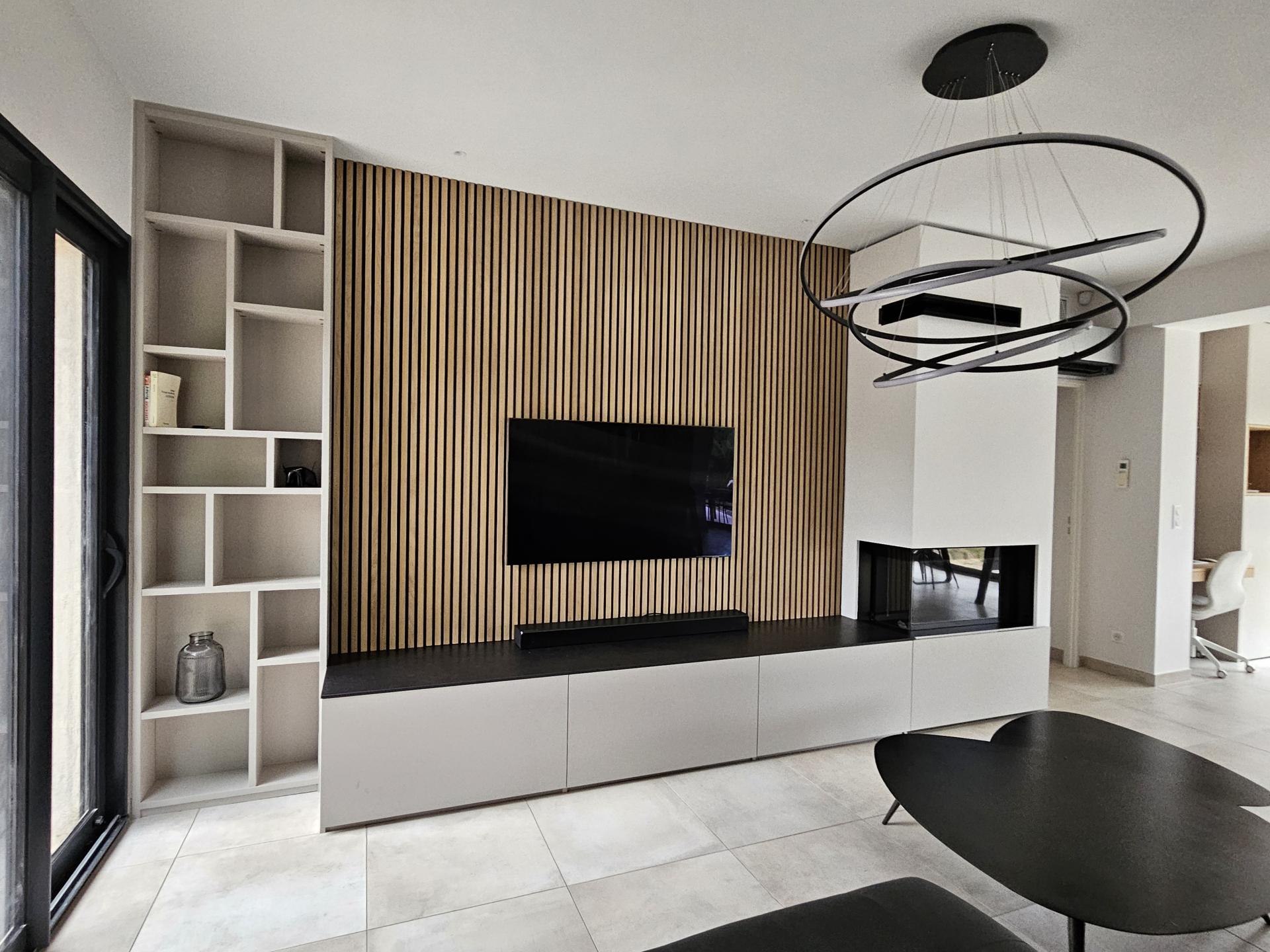 Le bois ne s’invite pas seulement dehors ! Nous proposons également l’habillage de vos murs intérieurs avec du parement bois exotique ou des planchers anciens revalorisés. Ces solutions apportent chaleur, authenticité et cachet à votre intérieur, qu’il s’agisse d’une pièce de vie, d’un bureau ou d’un commerce.