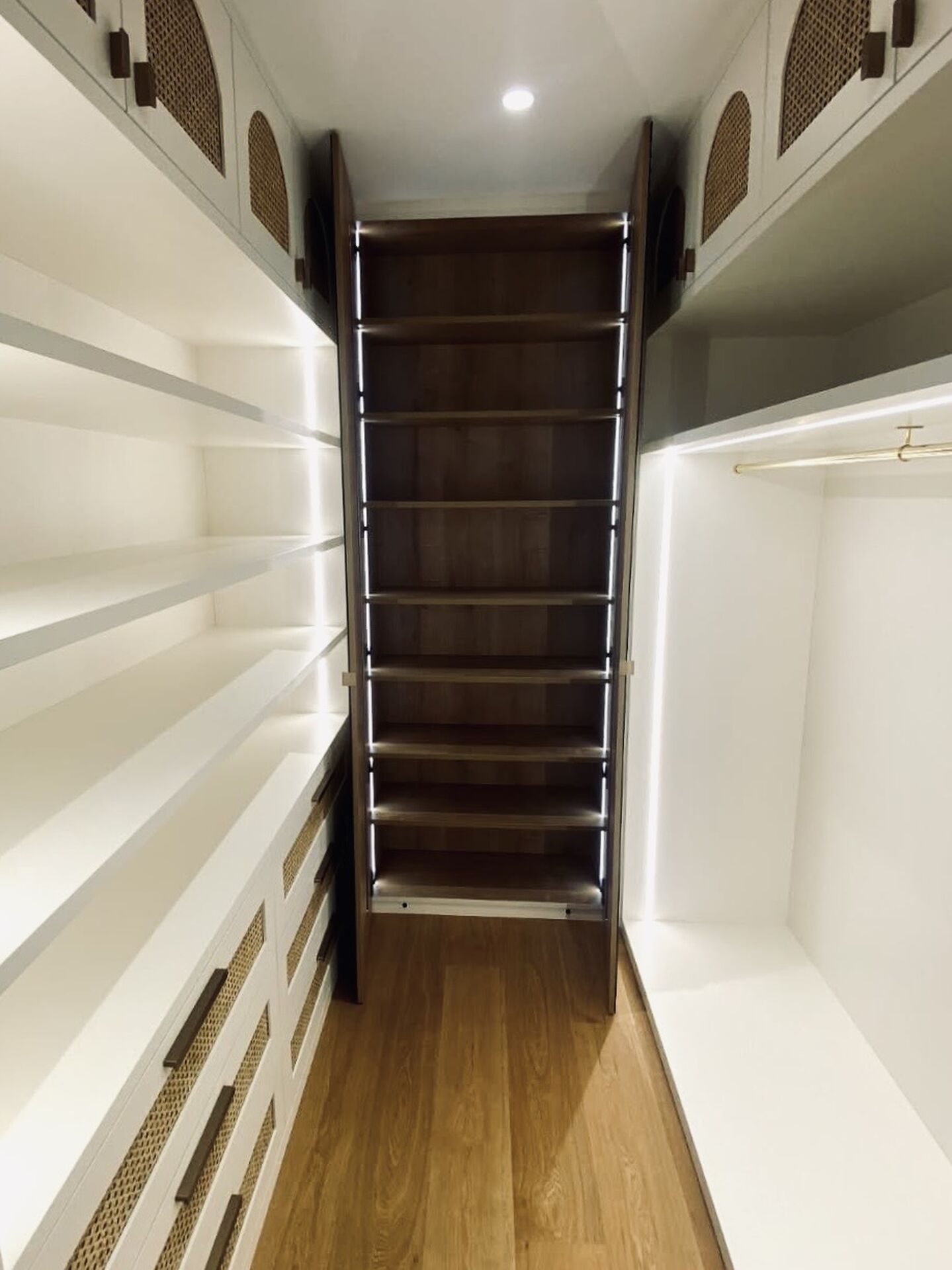 Le projet de dressing réalisé aux Pennes-Mirabeau par notre architecte partenaire Alexandra Ferré illustre parfaitement le savoir-faire de la parqueterie aixoise, experte en conception d’espaces fonctionnels et esthétiques. Dans cette création, la priorité a été donnée à l’optimisation des volumes, au choix de matériaux nobles et à une harmonie globale pensée pour s’intégrer naturellement dans l’univers de l’habitat. En tant que référence en parqueterie et en aménagement sur mesure dans la région sud, nous avons ici déployé un travail précis, mêlant design contemporain et ergonomie.