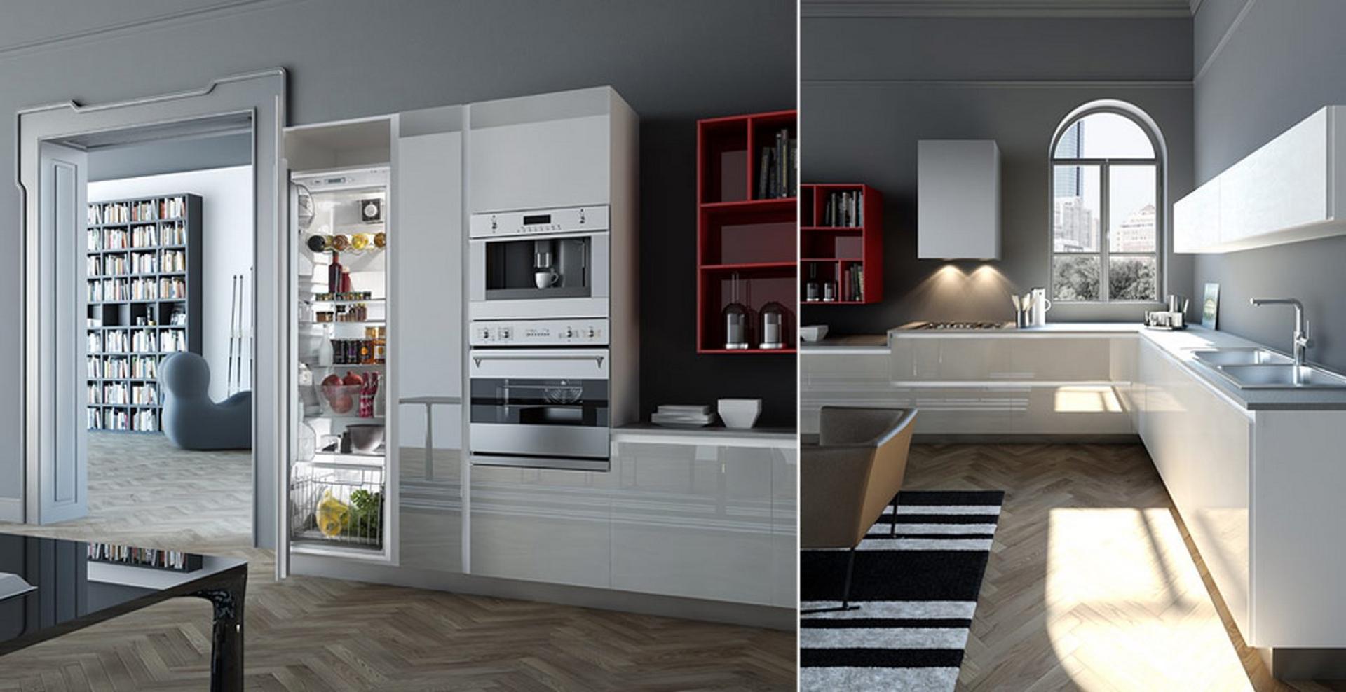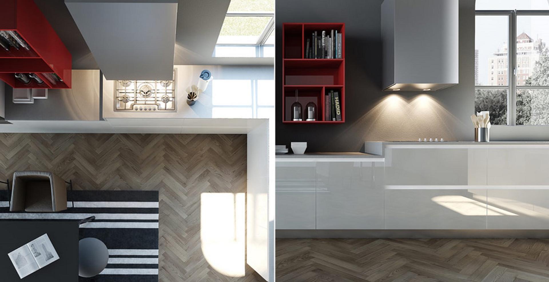 Chaque cuisine est une palette où la couleur joue un rôle clé. La niche ouverte laquée rouge est l'exemple parfait de l'audace de Sagne ; elle vient rompre la rigueur de la composition en apportant une touche dynamique et chaleureuse qui attire le regard et éveille les sens.