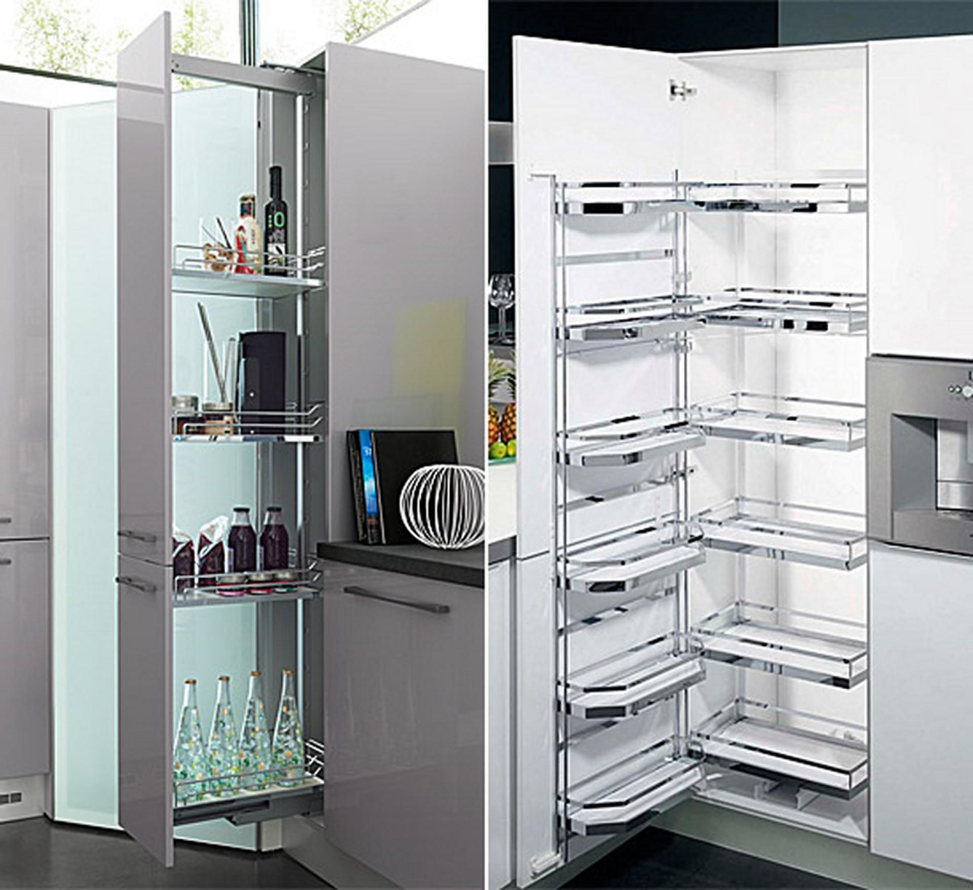 L'ouverture de la porte à extraction sur une colonne est un élément fonctionnel dans la cuisine.