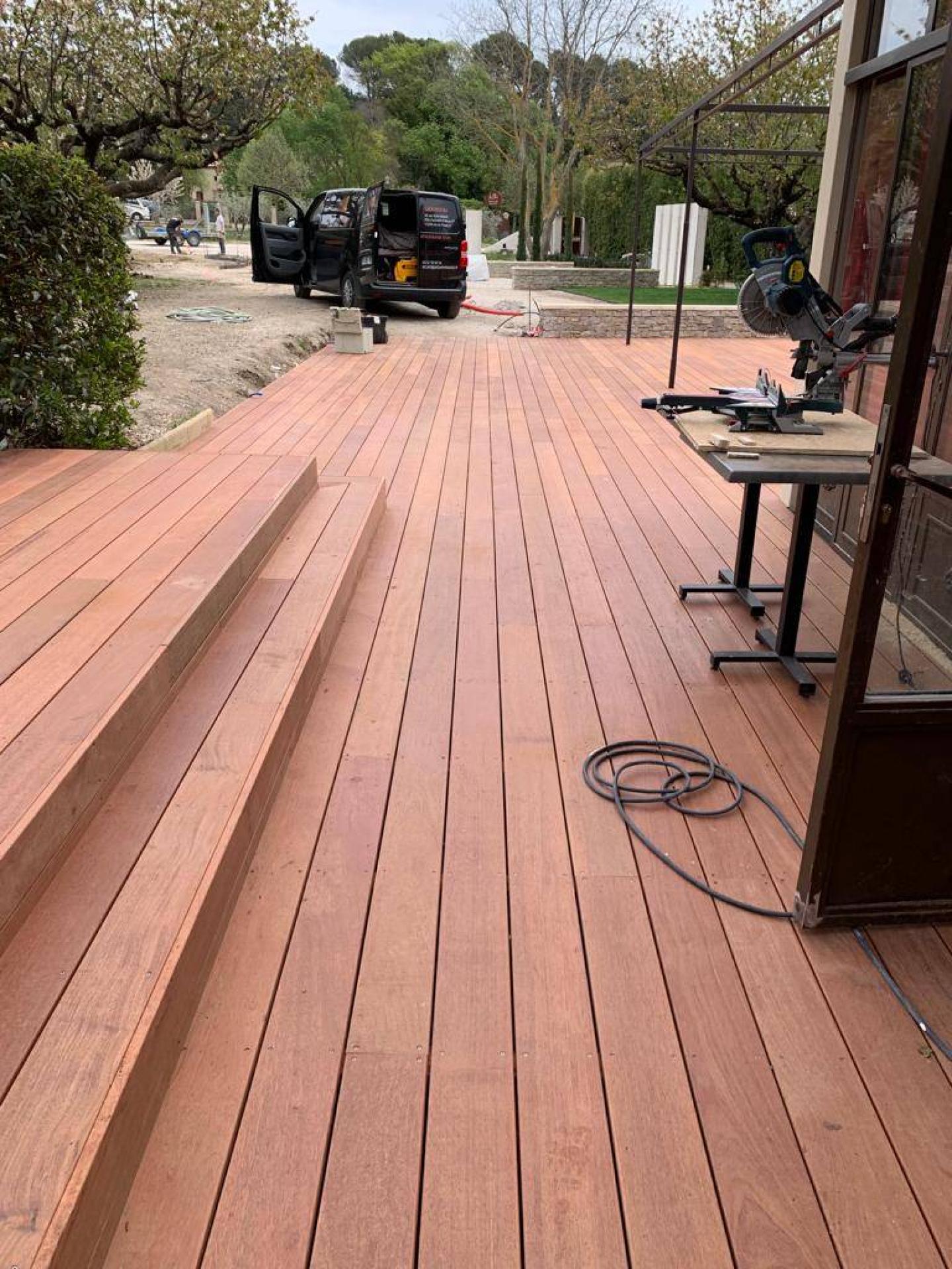 Notre dernier projet d'envergure à Lourmarin est à présenter avec fierté : une magnifique terrasse de 200m2 en Merbau, un bois exotique réputé pour sa solidité et son élégance naturelle. Cette accomplissement témoigne de notre dévouement envers la qualité et l'excellence.