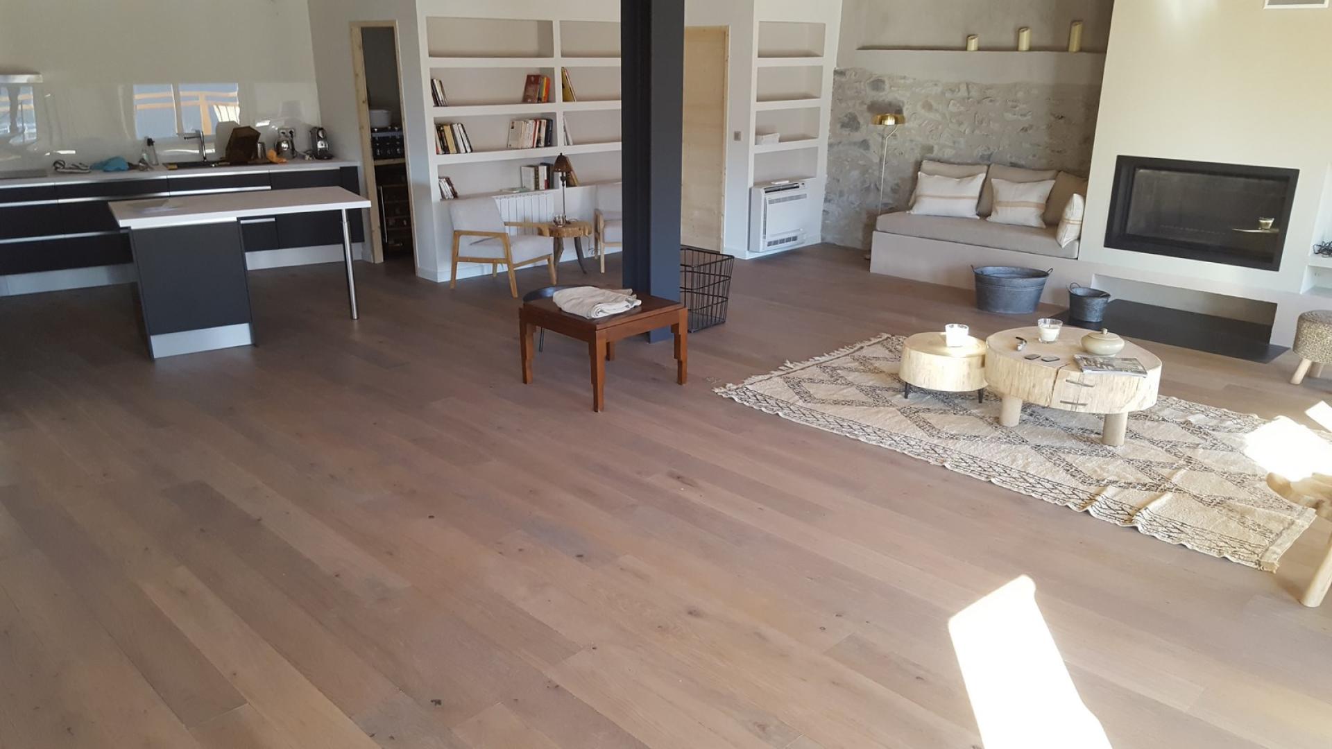 La parqueterie Aixoise à réalisé la pose de 150m² de parquet contrecollé DILEGNO dans un chalet à Vars.