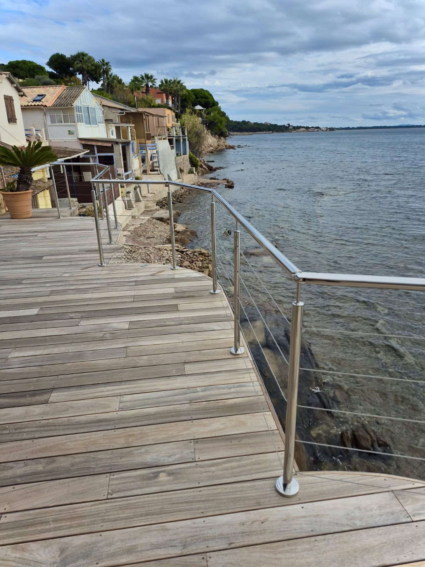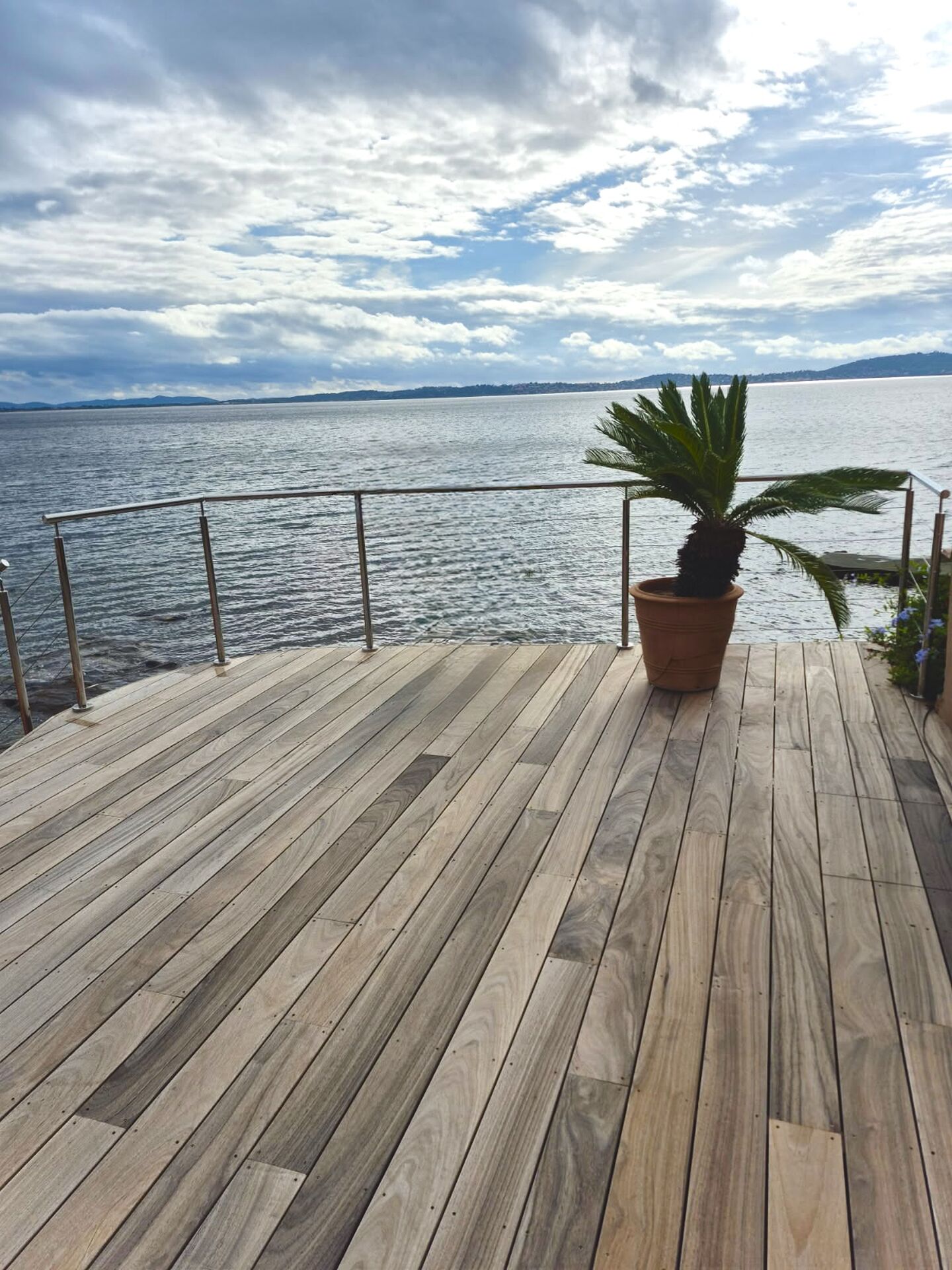Le Padouk est un bois exotique haut de gamme reconnu pour sa couleur chaude, sa stabilité exceptionnelle et sa résistance remarquable, même en milieu côtier. À Carqueiranne, face à la mer et exposés au vent, au sel et aux variations climatiques, les matériaux doivent être choisis avec exigence.