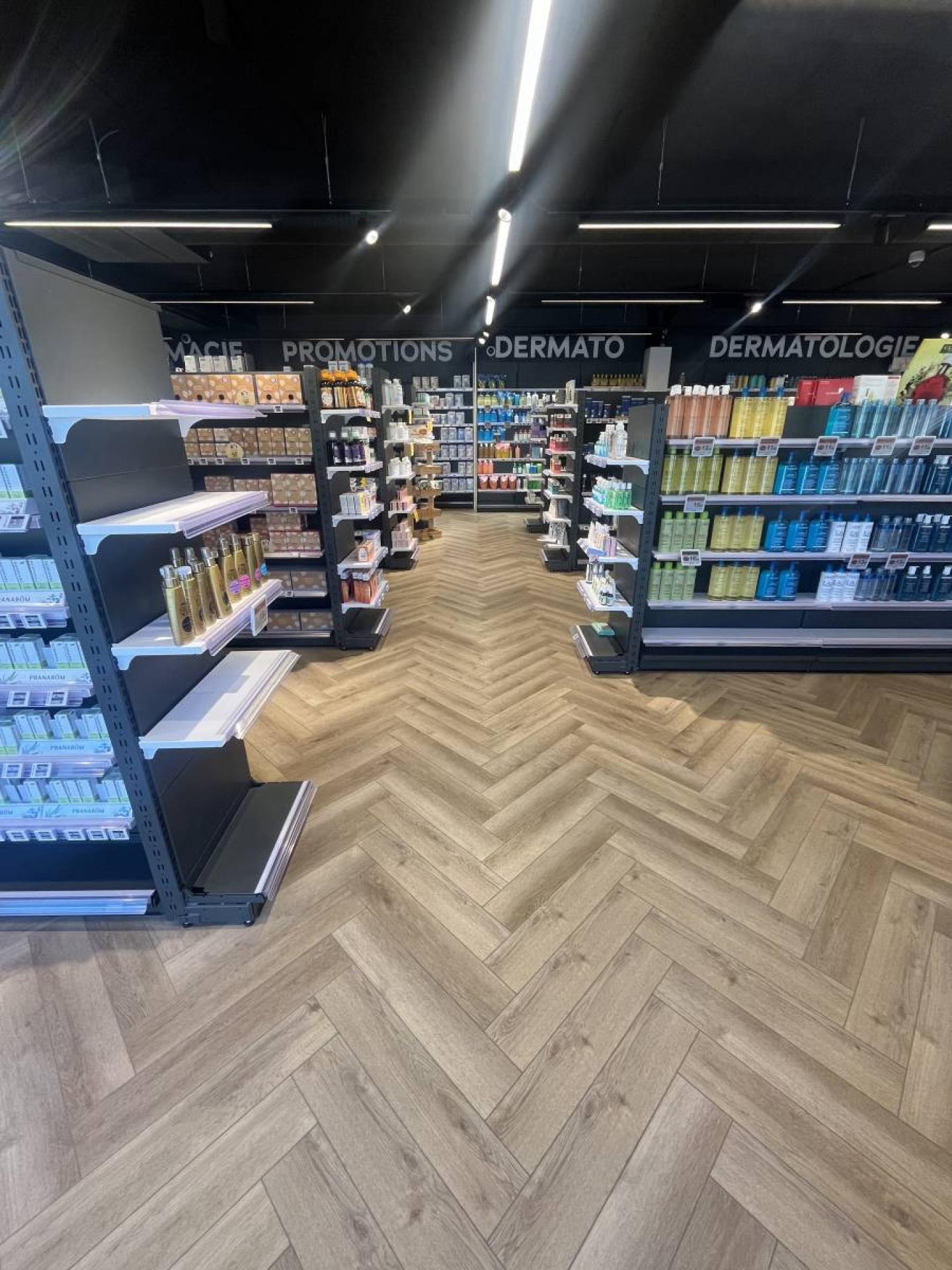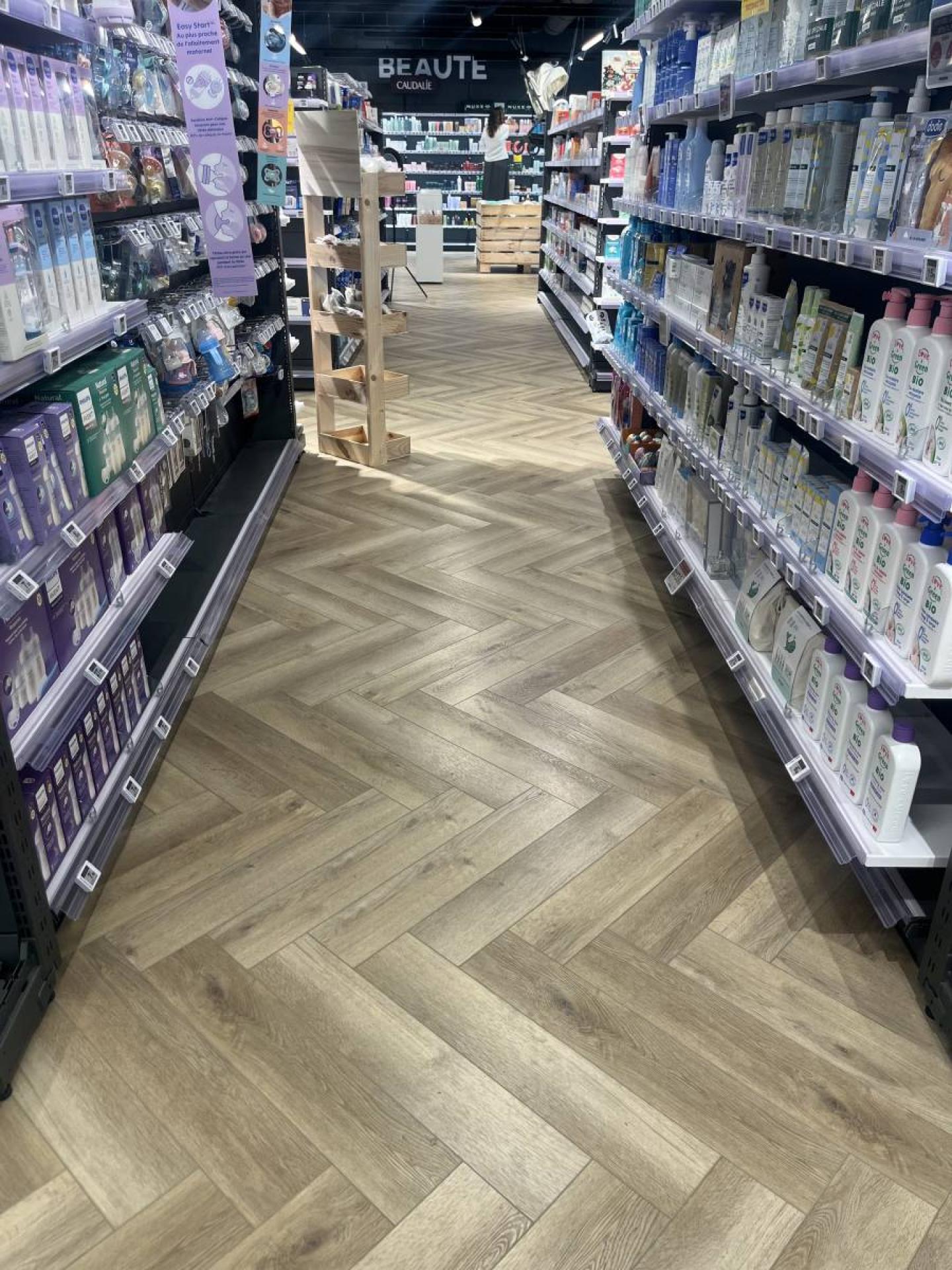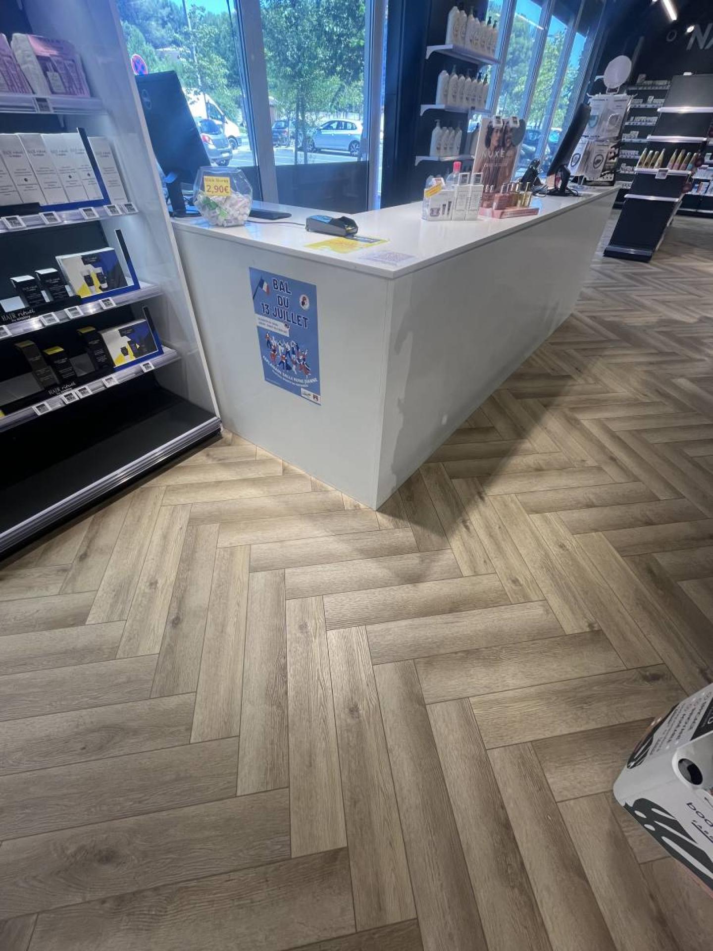 La Parqueterie Aixoise est fière de vous présenter l'une de nos récentes réalisations : un Parquet Vinyle Yukon Desert Dune bâton rompu de la marque Lamett, installé en bâton rompu dans une pharmacie à Ventenbrun· Ce projet met en lumière notre expertise et notre capacité à fournir des solutions de revêtement de sol de haute qualité pour des environnements commerciaux exigeants·