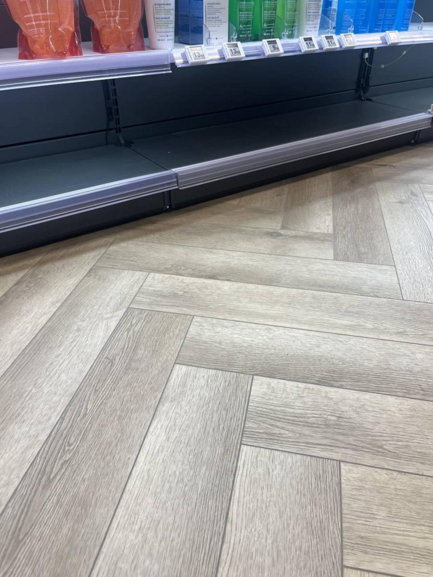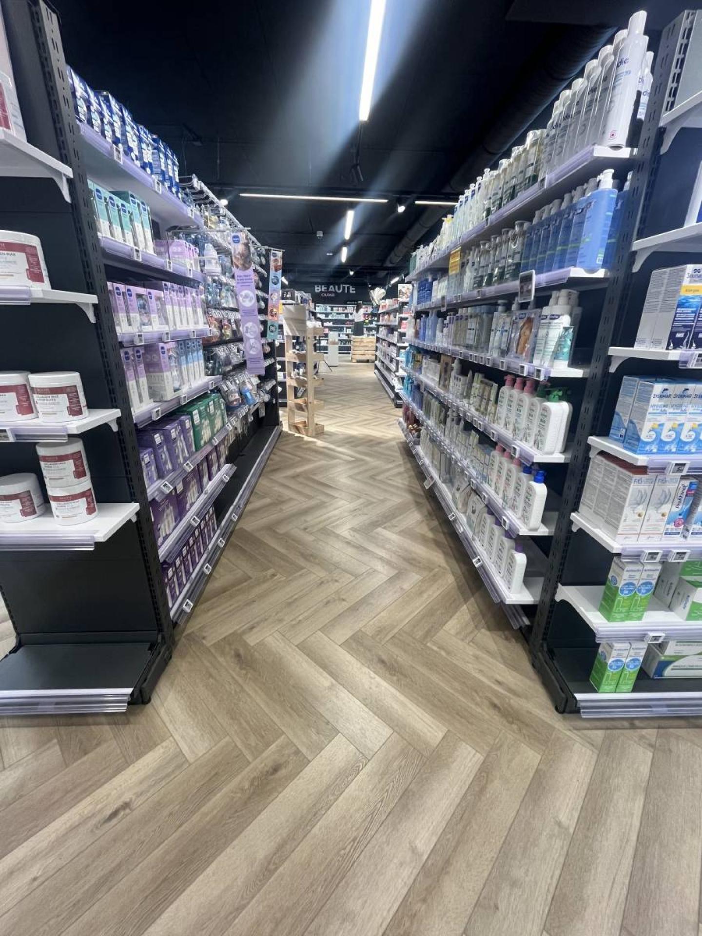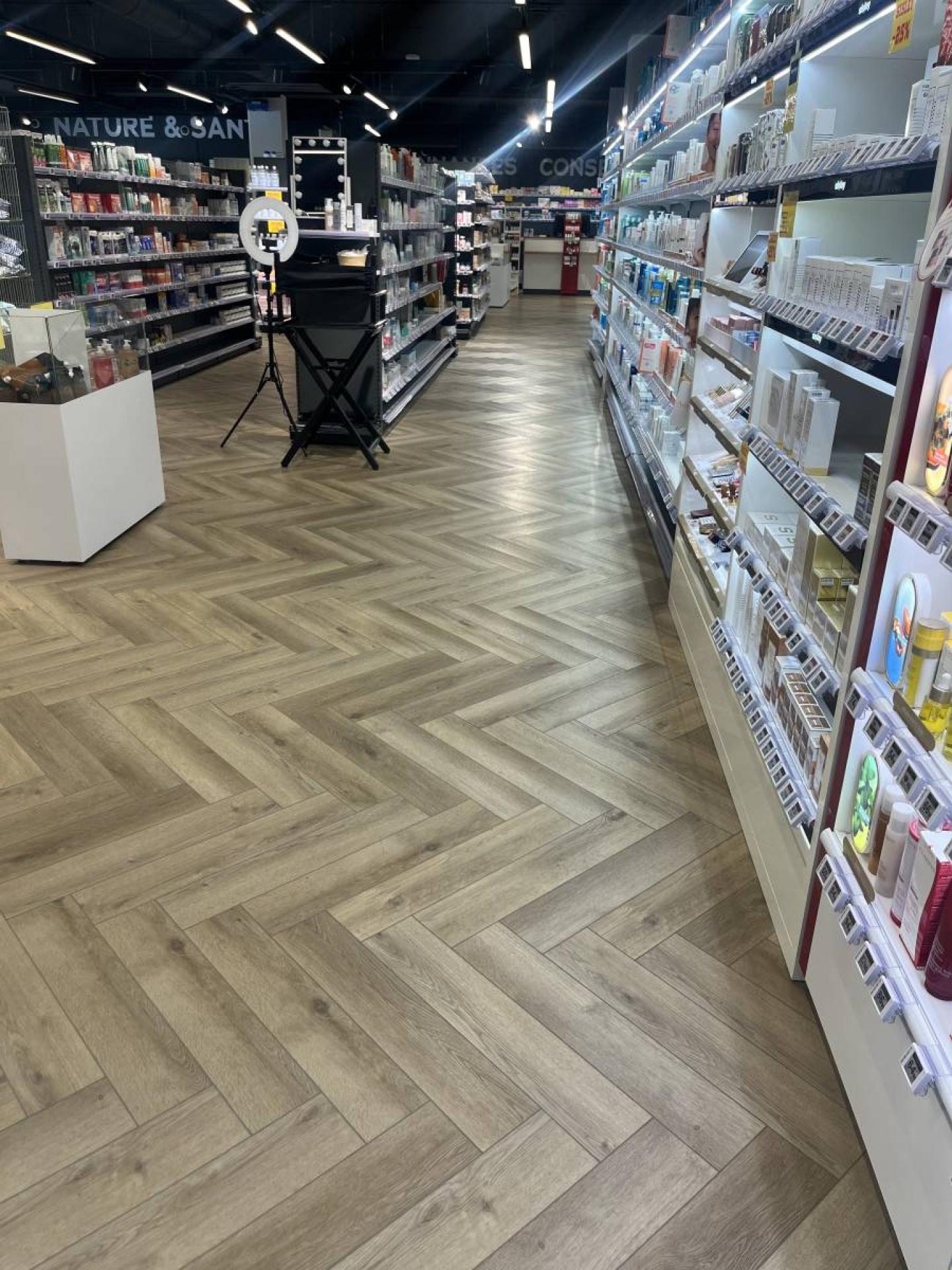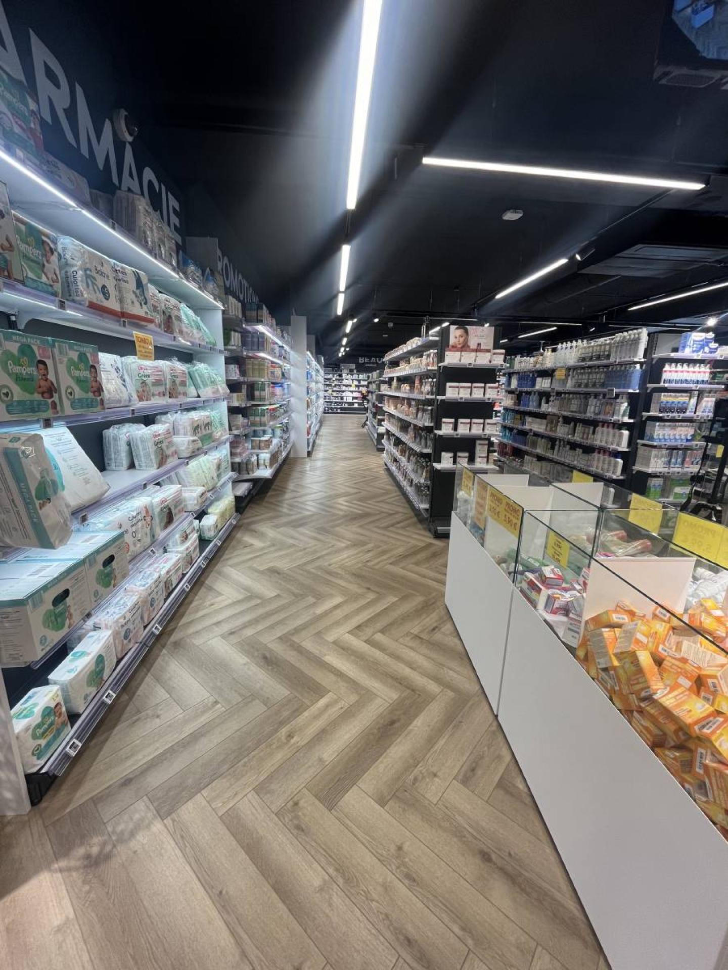 La Parqueterie Aixoise est fière de vous présenter l'une de nos récentes réalisations : un Parquet Vinyle Yukon Desert Dune bâton rompu de la marque Lamett, installé en bâton rompu dans une pharmacie à Ventenbrun· Ce projet met en lumière notre expertise et notre capacité à fournir des solutions de revêtement de sol de haute qualité pour des environnements commerciaux exigeants·