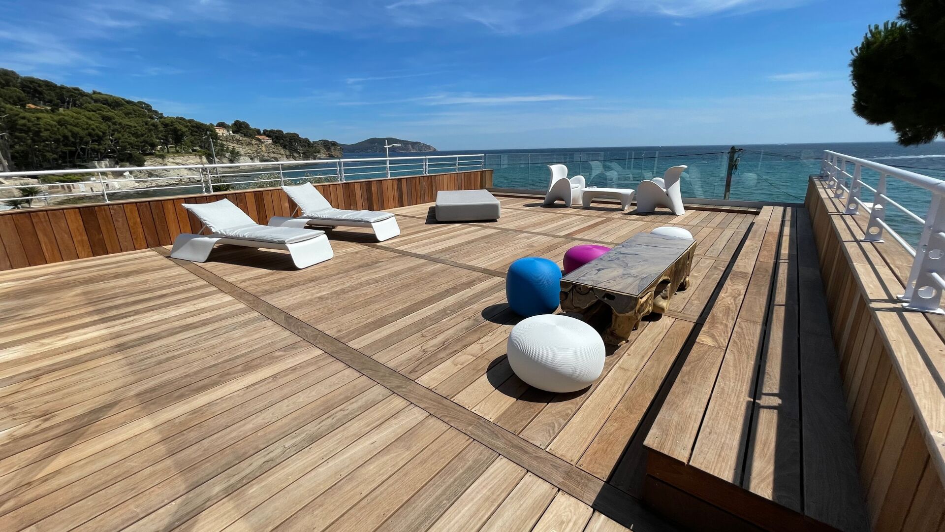 L’Ipé est reconnu comme l’un des bois les plus résistants au monde. Idéal pour les terrasses exposées aux intempéries, aux embruns et aux variations climatiques, il garantit une stabilité exceptionnelle. Dans un cadre naturel aussi particulier que celui de Cassis, ce matériau s’avère parfaitement adapté. Sa teinte chaude, variant du brun au miel, apporte un cachet unique à l’espace extérieur tout en valorisant les lignes architecturales.