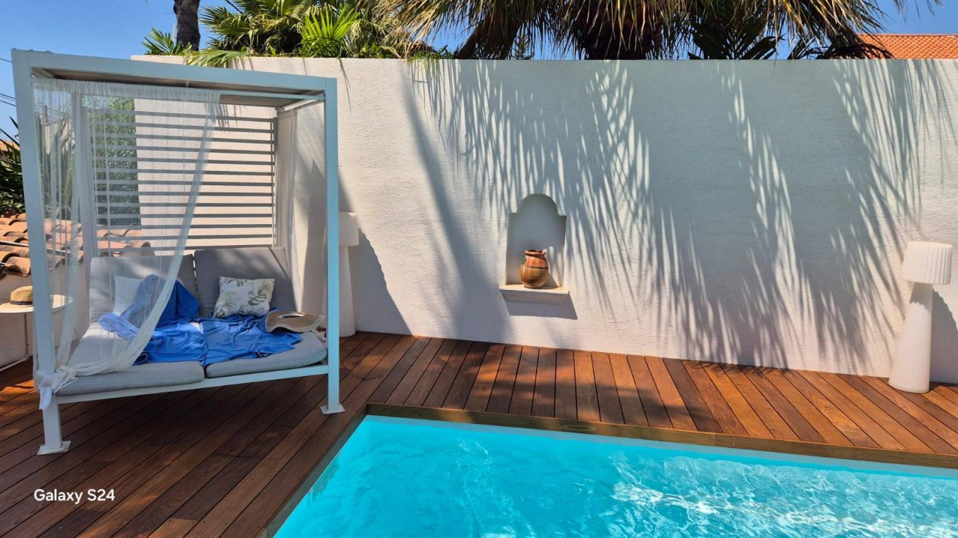 Pour cette réalisation, nous avons appliqué une huile spéciale qui pénètre profondément dans le bois, protégeant ainsi sa surface et rehaussant sa beauté naturelle· L'entretien de la terrasse en Ipé huilée est simple : un nettoyage régulier et une nouvelle application d'huile une à deux fois par an suffisent pour maintenir son éclat et prolonger sa durée de vie·