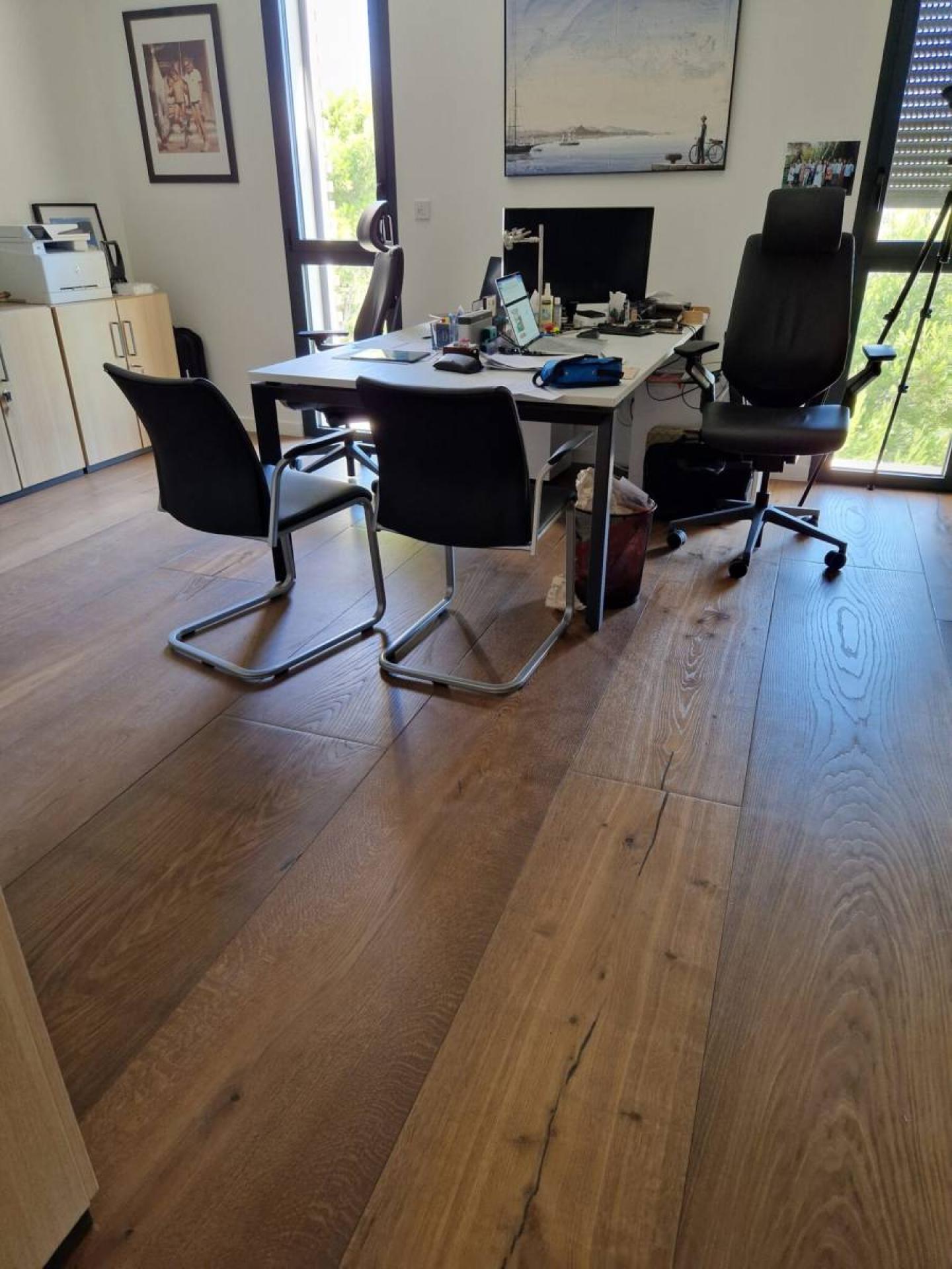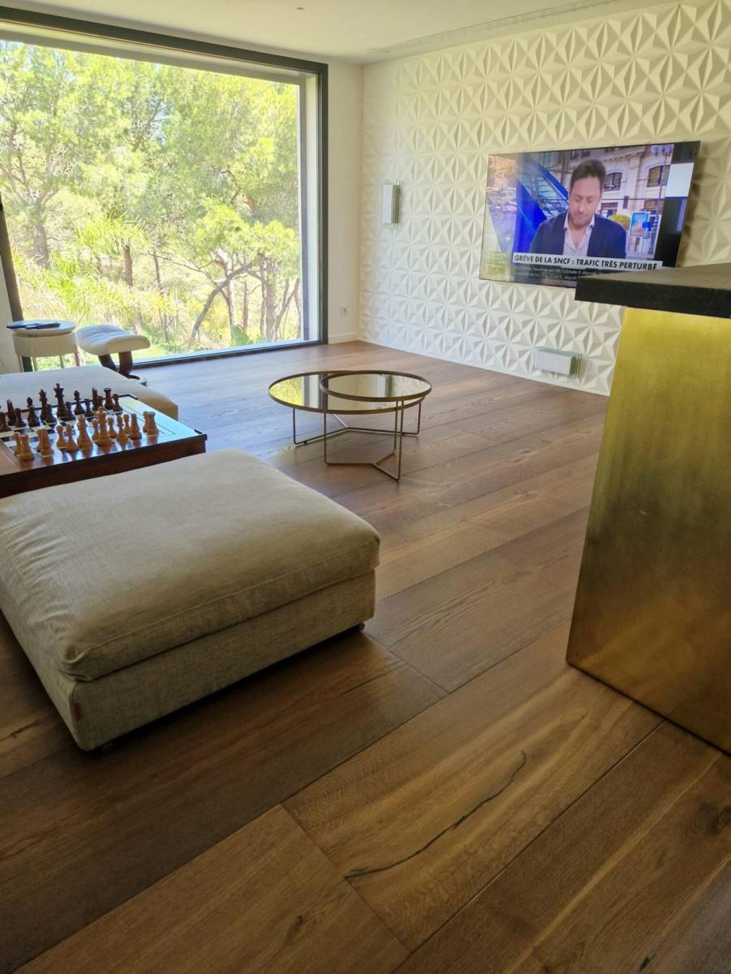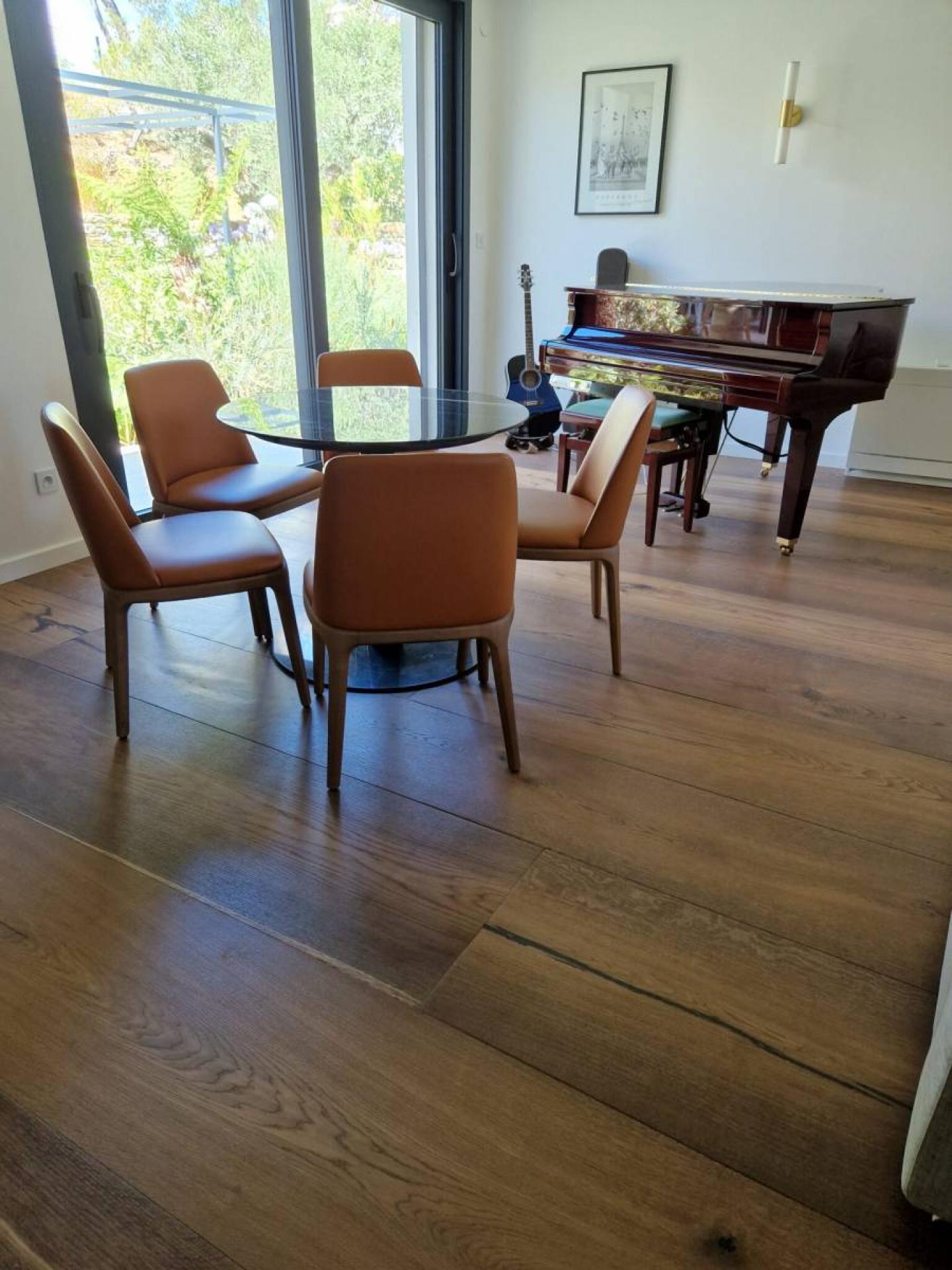 Ce parquet se démarque grâce à sa texture épaisse et ses différentes nuances, ce qui crée un effet visuel impressionnant. Le chêne âgé est non seulement magnifique, mais aussi très résistant. Il peut faire face aux usages quotidiens tout en préservant son apparence raffinée. Le parquet Foglie d'Oro Jumbo a été installé à Carry-le-Rouet, ce qui a transformé l'endroit en un véritable lieu de luxe et de bien-être.