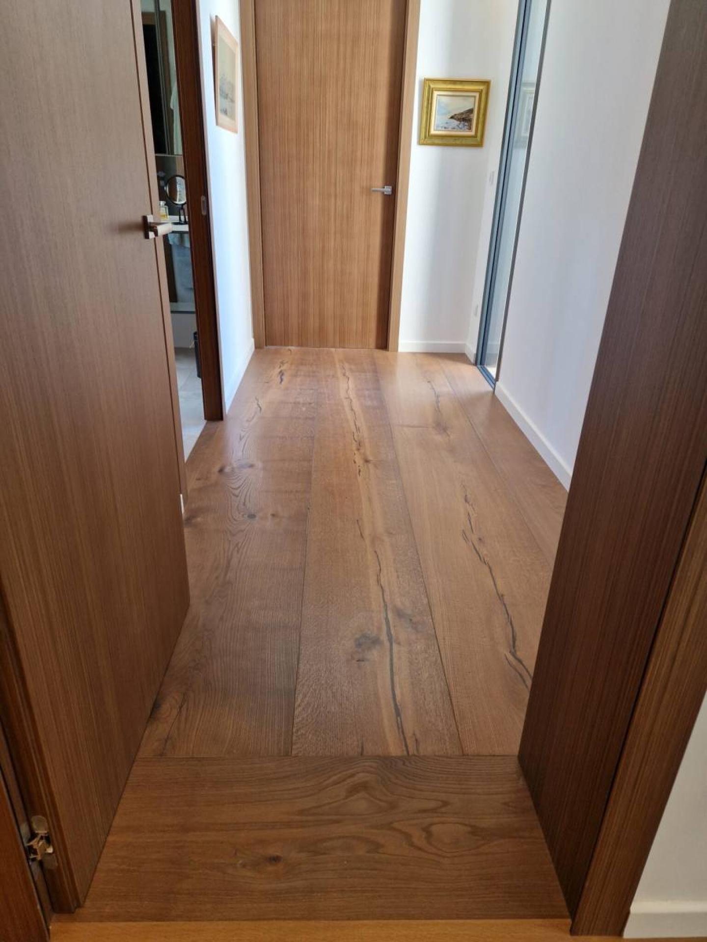 Toutes les compétences de notre équipe de spécialistes ont été utilisées pour ajuster et installer ce parquet de manière optimale. De la préparation du sol à la pose finale, chaque étape a été effectuée avec la plus grande minutie afin d'assurer un résultat impeccable. Le revêtement Foglie d'Oro Jumbo Chêne Vieilli a été minutieusement fixé, garantissant une stabilité et une adhérence optimales.