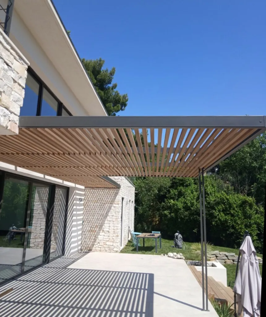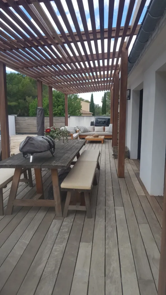 Fidèle à son exigence de qualité, la Parqueterie Aixoise applique le même niveau de maîtrise que pour la pose de parquet Marseille ou de parquet Aix en Provence. Les essences de bois sont soigneusement sélectionnées pour leur résistance naturelle aux intempéries et leur tenue dans le temps. Grâce à une conception sur mesure, nos ombrières s’adaptent à toutes les configurations : terrasses, jardins, patios ou abords de piscine.