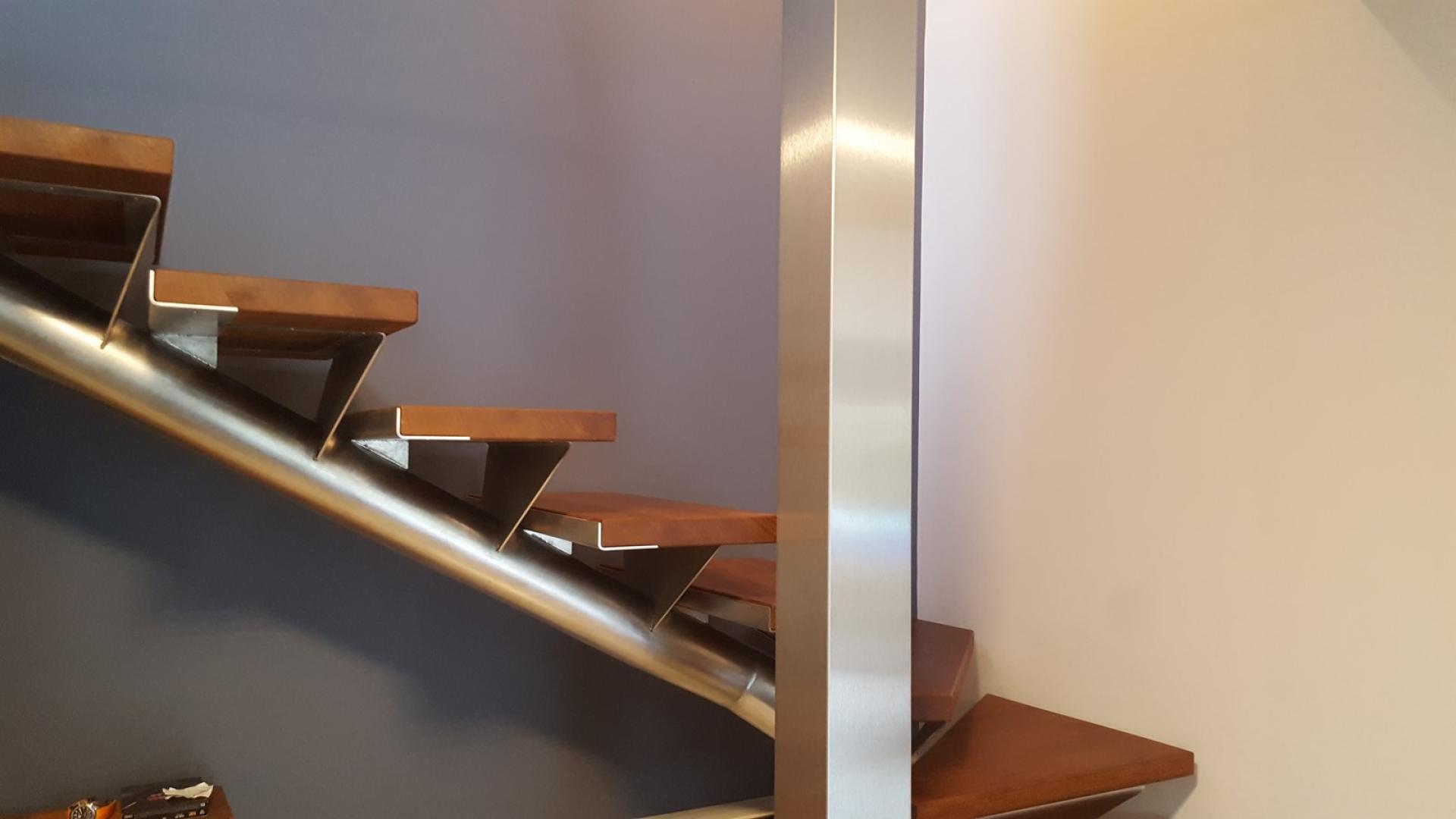 La Parqueterie Aixoise à conçu l'habillage d'un escalier en inox avec des plateaux de marche en Iroko.